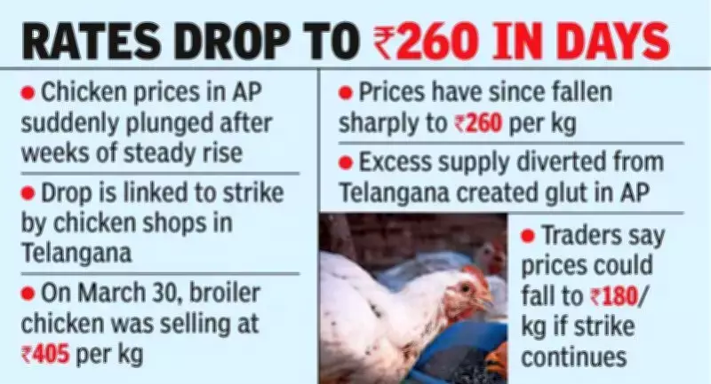 In a surprising and significant market shift, chicken prices across Andhra Pradesh have plummeted dramatically after a period of steady increases, offering substantial relief to consumers. This abrupt price drop is primarily attributed to the ongoing chicken shop strike in the neighboring state of Telangana, which has severely disrupted supply chains and reshaped market dynamics in the region.