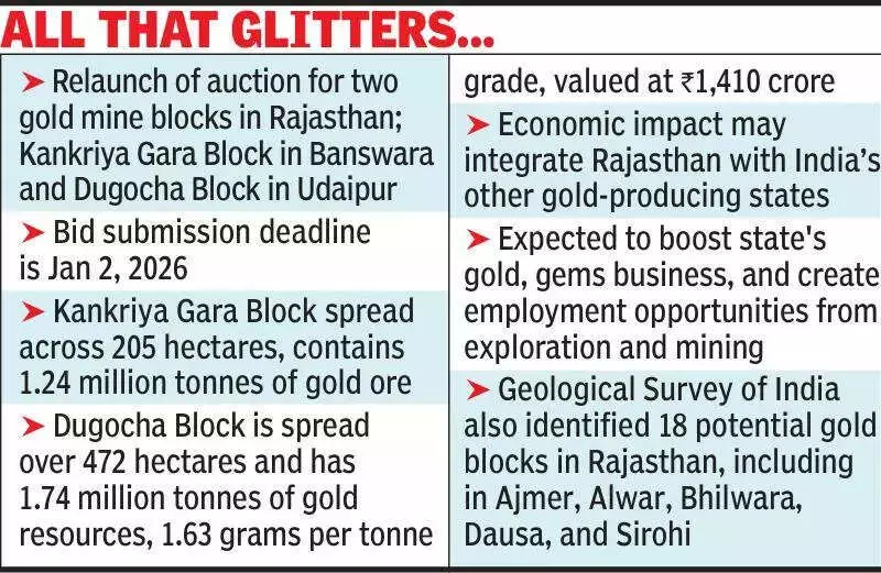 The state's Department of Mines and Geology is now inviting digital bids for composite licences. These licences grant the rights to both explore and mine gold in the specified blocks. The two blocks in focus are the Kankriya Gara Block in Banswara district and the Dugocha (Salumber) Block in Udaipur district. The crucial technical bid opening is scheduled for January 2, 2026.