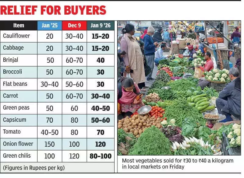Residents of Kolkata and its surrounding areas are witnessing a welcome respite from high food costs as local markets overflow with fresh, affordable winter vegetables. A combination of favourable weather and a bumper local harvest has led to a significant drop in prices, offering much-needed relief to household budgets.