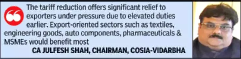 Adding a Vidarbha-centric perspective, COSIA Vidarbha chairman CA Julfesh Shah stated that the tariff reduction offers significant relief to exporters who have been under pressure due to elevated duties previously. He identified export-oriented sectors such as textiles, engineering goods, auto components, chemicals, pharmaceuticals, and MSMEs as those likely to benefit most substantially.