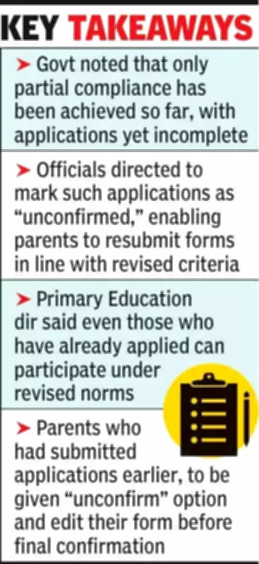 In its submission, the state clarified that the restriction of "one kilometre from residence" has been completely removed. The court recorded this development and disposed of the petition, as the primary grievance of the petitioners was addressed. Officials indicated that only partial compliance has been achieved to date, with numerous applications remaining incomplete. To rectify this, authorities have been directed to mark such applications as "unconfirmed," enabling parents to review and resubmit them in accordance with the revised criteria.