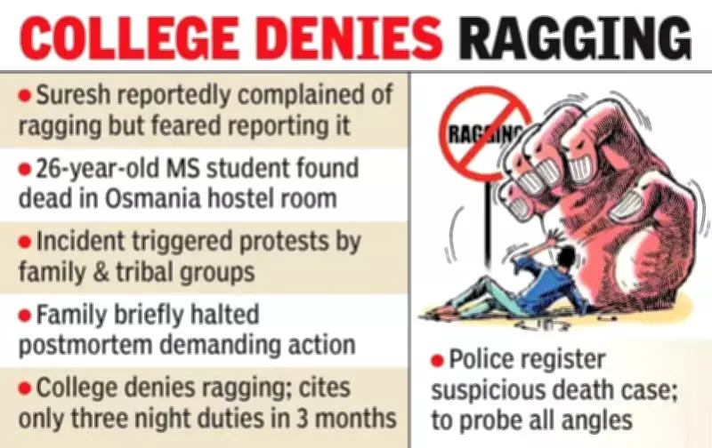 Hyderabad: The mother of a first-year postgraduate medical student has made serious allegations that sustained harassment and ragging by senior students may have directly contributed to her son's death at Osmania Medical College. Nagamani, mother of 26-year-old K Suresh, stated that her son had recently complained about being ragged but feared reporting the incidents, believing it would only escalate the harassment.