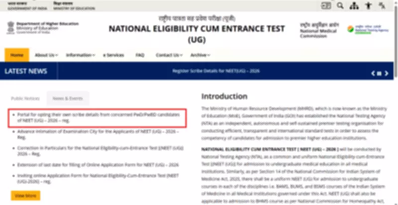 The National Testing Agency (NTA) has officially opened a dedicated portal for Persons with Benchmark Disabilities (PwBD) candidates appearing in the National Eligibility cum Entrance Test Undergraduate (NEET UG) 2026. This portal allows eligible candidates to submit details of their own scribe, a crucial step to ensure accessibility and support during the examination process.