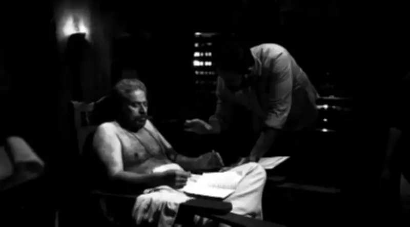 The newly released images offer fans an intimate look at the creative process behind the black-and-white masterpiece. In one captivating picture, veteran superstar Mammootty is deeply engrossed in studying the script, while director Rahul Sadasivan provides meticulous direction nearby. Another snapshot captures Sadasivan passionately enacting a scene, with Mammootty observing intently, showcasing their collaborative synergy. A third photograph reveals Mammootty reclining comfortably in a chair as Sadasivan explains a complex sequence in detail, highlighting the film's meticulous preparation.