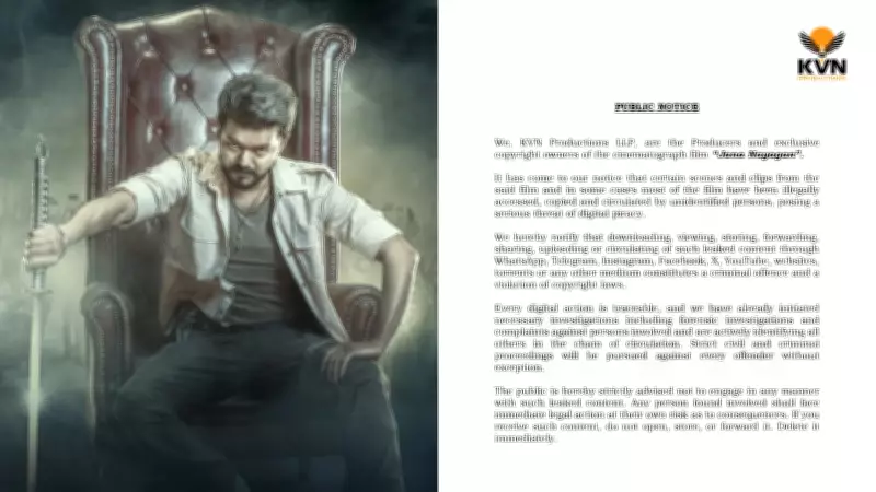 In a significant development that has sent shockwaves through the Tamil film industry, the production house behind actor Vijay's last movie, 'Jana Nayagan', has issued a stern warning in response to an unauthorized leak of the film's content. KVN Productions, the official makers of the highly anticipated project, have taken a firm stand against piracy and the illegal distribution of their intellectual property.