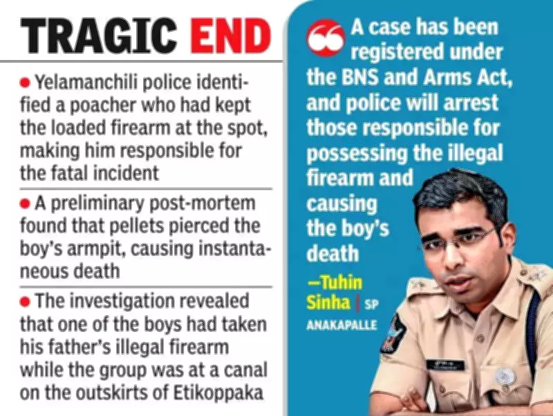 The Anakapalle district police, led by Yelamanchili inspector S Dhanunjaya Rao, concluded their investigation on Monday. They determined that Kaushik died when the loaded firearm went off accidentally during play. Police identified a poacher who had left the loaded country-made weapon at the location, holding him responsible for the boy's death.