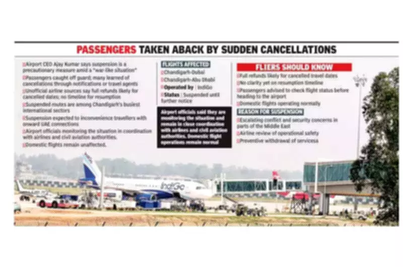 - Flights Affected: Chandigarh-Dubai and Chandigarh-Abu Dhabi routes, operated by IndiGo, are suspended until further notice.