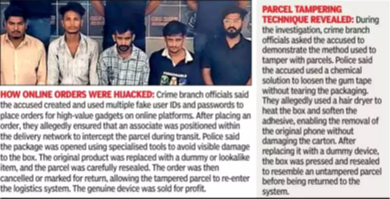 A suspected case of parcel tampering has escalated into a large-scale, organized e-commerce fraud operation spanning the states of Gujarat and Rajasthan. In a significant breakthrough, the city crime branch has arrested five individuals from Jalore, Ahmedabad, and Surat, exposing a sophisticated scam that infiltrated delivery networks.