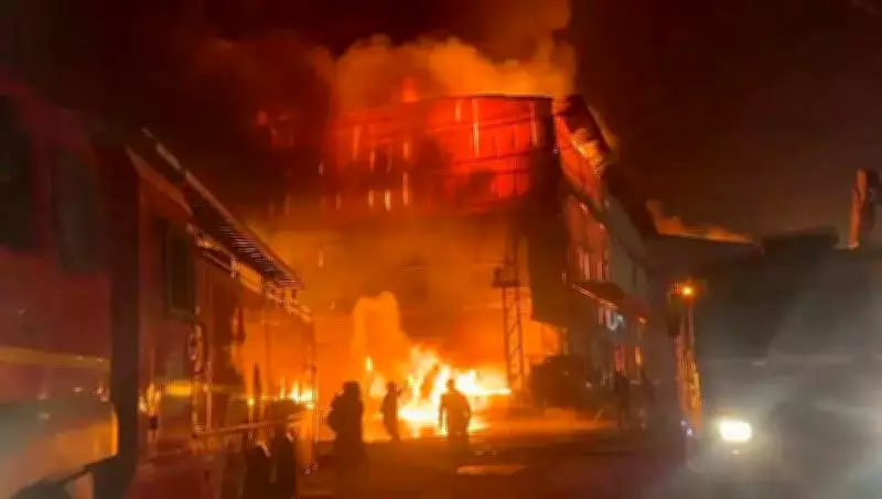 A devastating fire, suspected to be caused by a short circuit, completely gutted two factories in the Kotwali area of Ghaziabad on Thursday night, according to fire department officials. The intense blaze required a grueling 12-hour firefighting operation to bring under control, with cooling procedures still ongoing at the scene.
