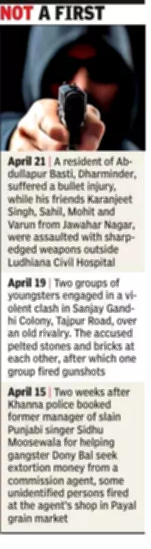 A resident of Abdullapur Basti, Dharminder, suffered a bullet injury, while his friends Karanjeet Singh, Sahil, Mohit, and Varun from Jawahar Nagar were assaulted with sharp-edged weapons outside Ludhiana Civil Hospital. The accused and victims had a prior fight, after which the victims went to the hospital for a medical examination. However, the accused chased them and attacked them again.