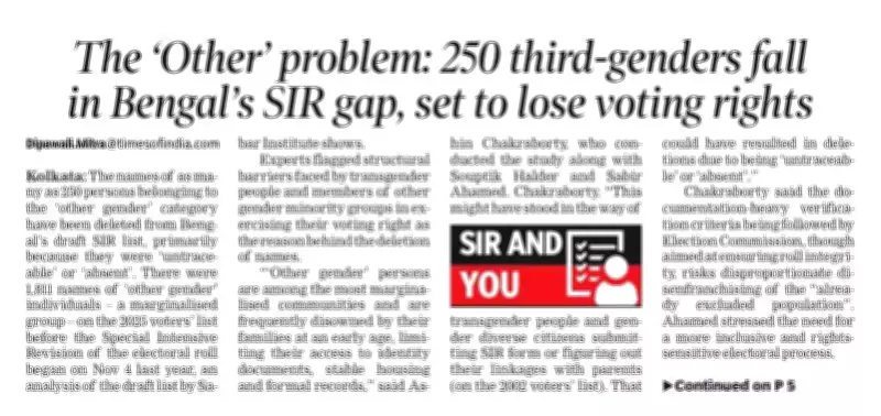According to reports, the names of approximately 250 persons from the 'other gender' category were removed from Bengal's draft SIR list, out of a total of 1,811 individuals in this category. The deletions were primarily justified on grounds such as being 'untraceable' or 'absent,' raising concerns about inclusivity and fairness.