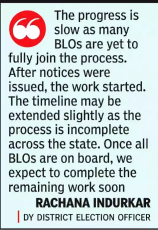 Deputy district election officer Rachana Indurkar acknowledged that the exercise is progressing slowly, with many BLOs yet to fully engage. "After notices were issued, the work started. So far, around 25% of online mapping has been completed. No final dates have been declared yet, and the timeline may be extended slightly as the process is incomplete across the state. Once all BLOs are on board, we expect to reach around 50–55% and complete the remaining work within the additional time," she explained.
