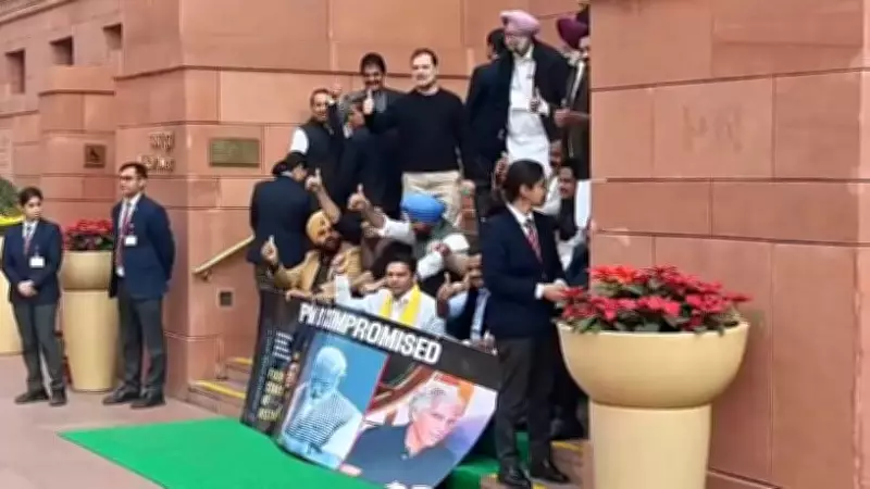 The protest involved suspended MPs from various parties who gathered outside the Parliament House to voice their dissent. During this demonstration, Rahul Gandhi and Ravneet Bittu, now on opposing sides of the political aisle, had a brief but intense confrontation.
