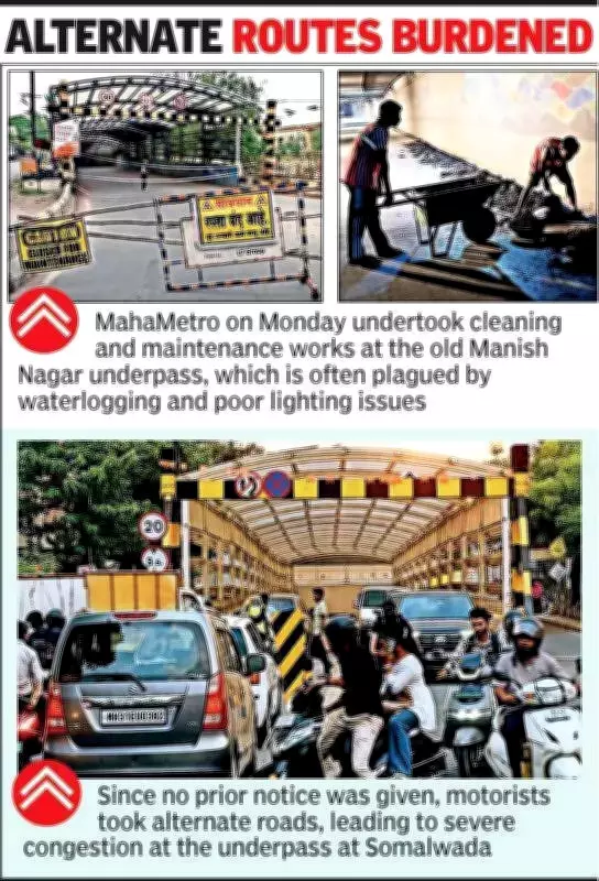 The underpass, a crucial link between Wardha Road and areas across the Nagpur-Wardha railway line, was shut without prior notice for maintenance and cleaning work. The move led to heavy congestion on alternative routes, particularly at the Somalwada underpass, which witnessed severe traffic jams during both morning and evening peak hours. A senior MahaMetro official confirmed that the closure was temporary. "The underpass was closed for maintenance and cleaning work. It will be reopened on Tuesday," the official told TOI.