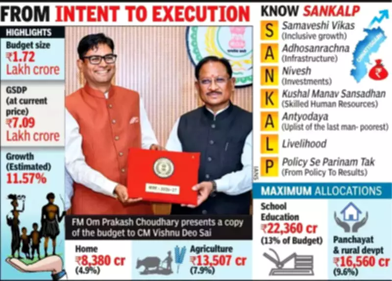 In a significant move aimed at transforming its tribal heartlands, the state of Chhattisgarh on Monday rolled out a massive Rs 1.72 lakh crore budget titled SANKALP. This comprehensive financial plan places the regions of Bastar and Surguja at the forefront of the state's next development phase, blending substantial infrastructure investments with continued welfare initiatives and a reinforced security push in areas affected by Left Wing Extremism.