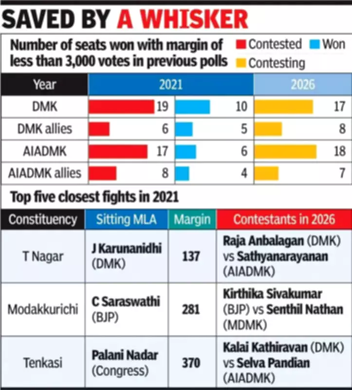 Both the DMK and AIADMK have moved to reclaim seats they are determined not to lose, resulting in direct confrontations between the two parties in 14 of these tight-margin constituencies, an increase from 11 such face-offs in 2021. The political camps are deploying extensive resources and strategies to secure these critical areas.