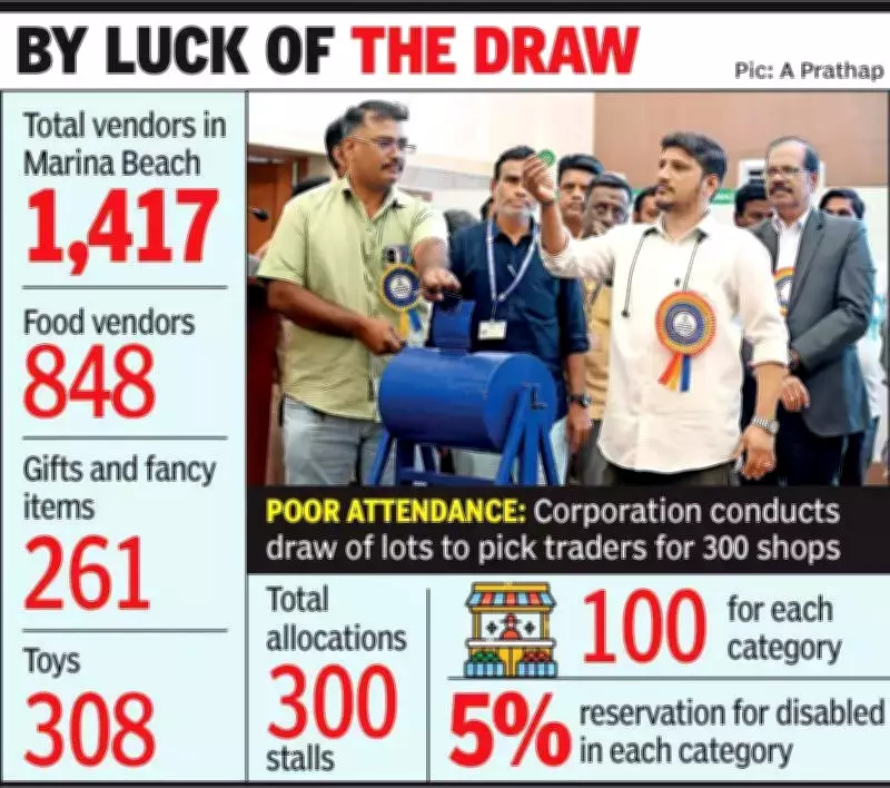 In a significant development at Marina Beach, the Greater Chennai Corporation (GCC) proceeded with the allotment of 300 stalls through a lottery system on Thursday, despite facing a complete boycott from 1,417 vendors. The event was closely monitored by retired Jammu & Kashmir High Court Chief Justice N Paul Vasanthakumar, ensuring transparency in the process.