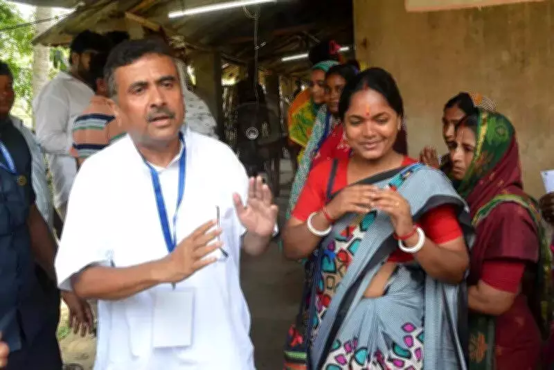 Kar's wife Siuli, the local panchayat chief, was at the booth. "My husband just called up to ask me to get his lunch. Meanwhile, news came that some outsiders from BJP had beaten up a local youth. I was attending to him when Adhikari arrived here to disturb peace," she alleged.