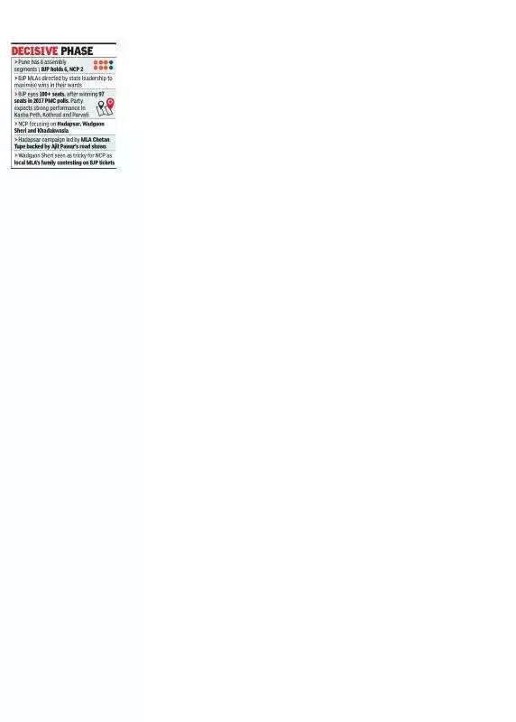 Hadapsar, Wadgaon Sheri, and Khadakwasla represent critical assembly segments for the NCP. The party captured the Hadapsar seat in the 2024 assembly elections. NCP functionaries believe they can consolidate their presence by winning maximum seats in the civic polls here.