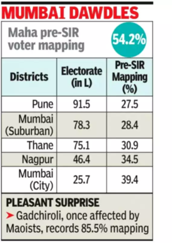 Nagpur: In a concerning development for electoral preparedness, Maharashtra's largest urban districts have emerged as the weakest links during the ongoing pre-special intensive revision (SIR) exercise. Major metropolitan centers including Pune, Mumbai, Thane, and Nagpur are reporting alarmingly low coverage rates, despite collectively hosting a substantial portion of the state's electorate.