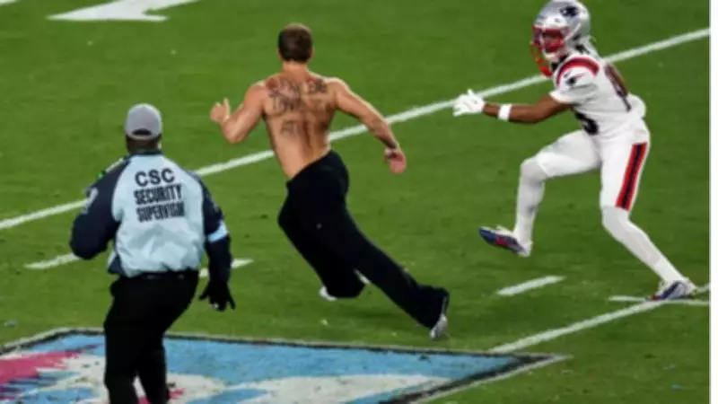 Super Bowl LX Game Paused by Shirtless Field Intruder in Deliberate Marketing Ploy