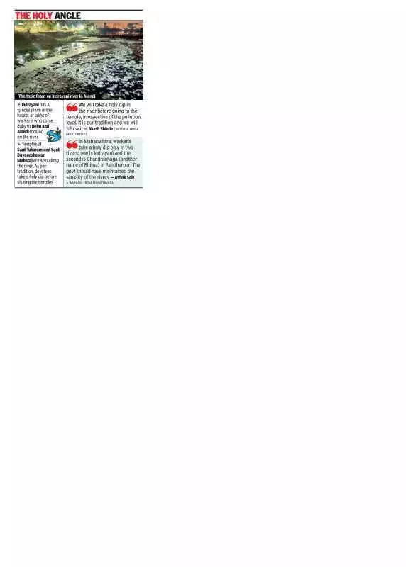 Environmentalists have issued stern warnings, stressing that unless strict enforcement and accountability mechanisms are introduced immediately, the Indrayani river could face irreversible ecological damage. The river is not merely an ecological lifeline but also a major pilgrimage route, especially during the wari when lakhs of devotees trek to Pandharpur. Locals fear that the deteriorating water quality poses serious health risks to pilgrims and nearby villagers.