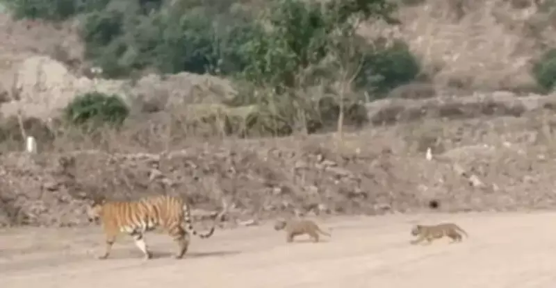 According to reports, on April 2, a group of farmers traveling to their fields along a road near the Shindola Khan area spotted a tigress and two cubs crossing the road. The farmers immediately slowed down their vehicle and captured visuals on their mobile phones before promptly informing forest department officials. In response, the forest department has installed trap cameras in the area to monitor tiger movement and assess the situation more closely.