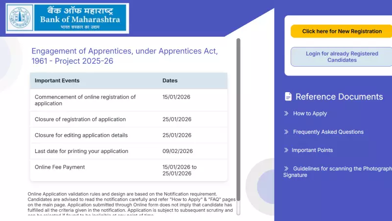 The Bank of Maharashtra is set to conclude the online registration process for Apprentice posts this week, with the final deadline fixed for January 25, 2026. Interested candidates must submit their applications through the official website, bankofmaharashtra.bank.in, before this date to be considered. The bank has made it clear that no applications will be accepted after the closing date, emphasizing the importance of timely submission.