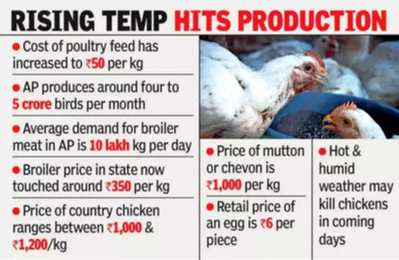 Meat traders across Andhra Pradesh predict further price escalation as chick production continues to decline under persistent scorching temperatures. The poultry association has warned that hatchery losses are mounting under current humid conditions, suggesting that supply constraints may worsen before they improve.