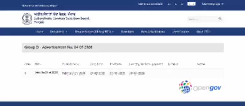 The Punjab Subordinate Services Selection Board (PSSSB) has officially released a significant recruitment notification, designated as Advertisement No. 04/2026, targeting the filling of numerous Group D positions across various departments of the Punjab government. This announcement marks a crucial opportunity for job seekers in the state, with the board set to recruit for roles including Sewadar, Chowkidar, Sweeper, Safai Sewak, Mali, Laboratory Attendant, Fisherman, and other similar positions.