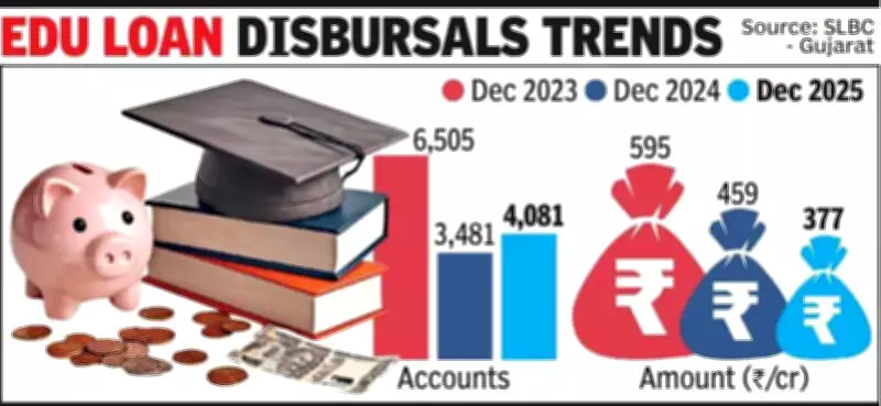 Data from the 188th State Level Bankers' Committee (SLBC) Gujarat report reveals a consistent downward trajectory in education loan disbursals. The figures peaked at Rs 595 crore in the December 2023 quarter, then dropped to Rs 459 crore in the corresponding quarter of 2024, before reaching a low of Rs 377 crore in 2025. This represents a substantial reduction in financial support for overseas studies.