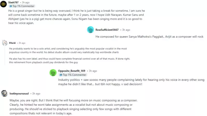 Following the announcement, Reddit threads dedicated to Indian music and Bollywood have been flooded with posts expressing a wide spectrum of emotions. Many users have shared heartfelt messages of gratitude and sadness, reminiscing about how Arijit Singh's soulful voice has been the soundtrack to their lives. Others have turned to analytical discussions, pondering the underlying reasons behind his decision to step away at the peak of his career.