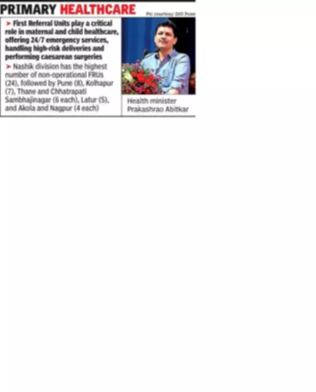 Health Minister Prakashrao Abitkar has pledged to address the critical issue of 64 out of 236 First Referral Units (FRUs) being non-operational across Maharashtra. The minister stated he would ensure these essential healthcare centers become functional soon, citing shortages of specialist doctors and infrastructural problems as primary causes.