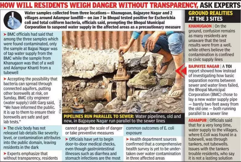 A public health crisis is unfolding in parts of Bhopal as residents, left without clear guidance, continue to draw drinking water from potentially unsafe sources days after the Bhopal Municipal Corporation (BMC) confirmed E. coli contamination in a well in Khanugoan. Despite the known risks of gastrointestinal illnesses, a comprehensive health survey and door-to-door checks are yet to begin, leaving the community vulnerable.