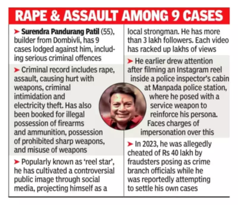 In a dramatic midnight operation, the Thane crime branch has arrested a 55-year-old Dombivli builder and history-sheeter, just weeks after he walked out on bail in a previous case. The builder, Surendra Pandurang Patil, had cultivated a gangster-style image on Instagram, earning him the nickname 'reel star' among his over 3 lakh followers. However, his online persona has now collided with harsh legal reality following the discovery of a staggering arsenal of illegal weaponry at his residence.