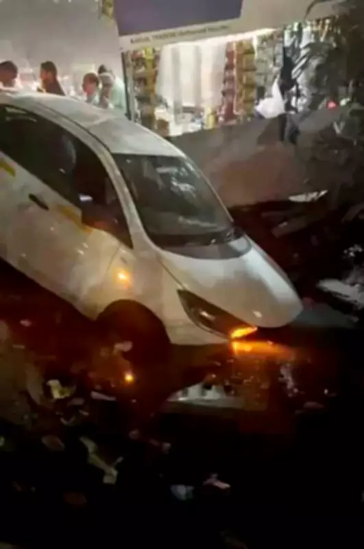 According to police reports, the car's owner had parked the vehicle at the spot and stepped away briefly to purchase items from a nearby market. In his absence, the car suddenly began to move, rolling directly into the gaping, uncovered drain. Fortunately, no one was inside the vehicle at the time, preventing what could have been a fatal casualty.