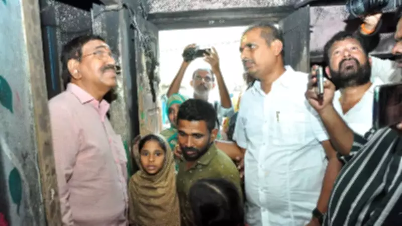 Dr. Narayana met with Shahina and her family members at their gutted residence located in the 44th division under the Nellore Municipal Corporation limits. During the emotional meeting, the family recounted their ordeal, explaining how the fire had reduced all their valuables to ashes. Expressing profound grief over their loss, the minister immediately provided financial assistance of Rs.50,000 to help the family cope with their immediate needs.