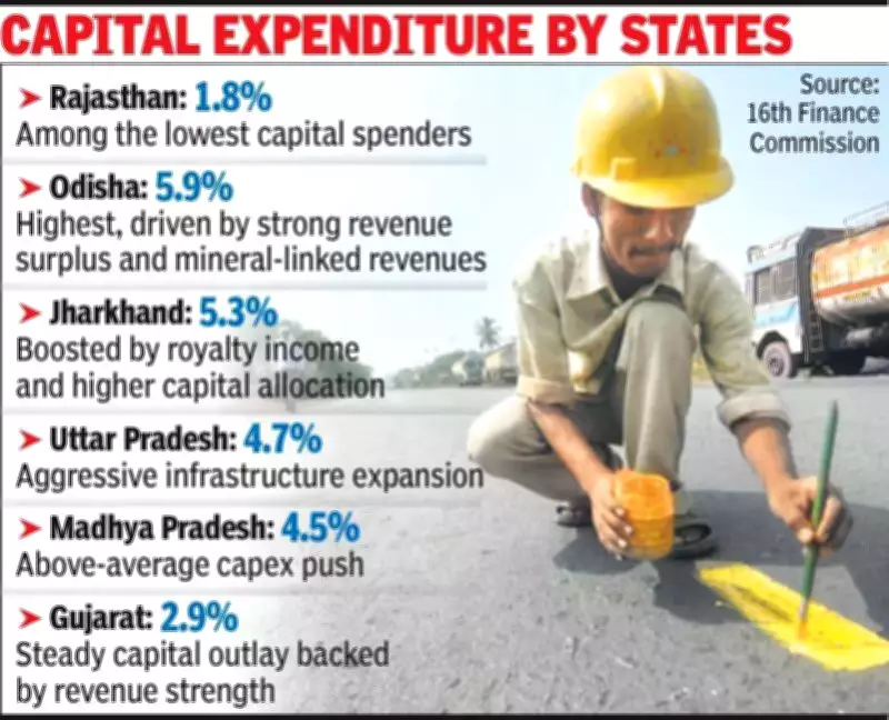 The disparity becomes particularly evident when comparing Rajasthan's performance with other states. Odisha led the pack with an impressive 5.9% of GSDP allocated to capital expenditure, followed closely by Jharkhand at 5.3%. Uttar Pradesh and Madhya Pradesh also demonstrated stronger commitments, allocating 4.7% and 4.5% of their respective GSDPs to capital spending during the same period. These higher allocations reflect a sharper focus on critical infrastructure development including roads, water systems, power infrastructure, and industrial expansion.