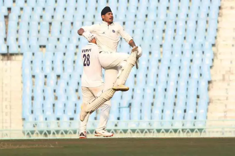 The only breakthrough for Uttar Pradesh came after lunch when spinner Vipraj Nigam ended the opening stand by trapping Mohan lbw at 147 for 1 in 43.3 overs. This offered UP a brief opening to claw back into the contest, but Jharkhand consolidated immediately.