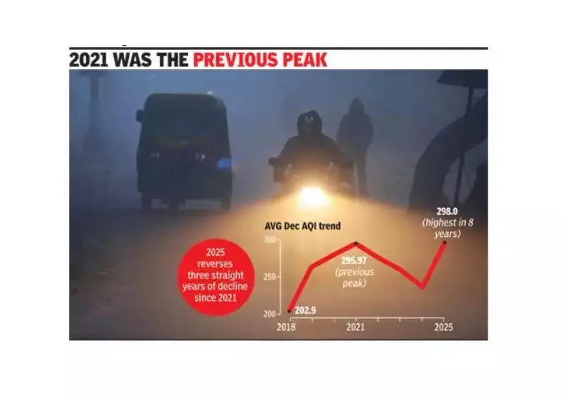 Gurgaon has recorded its most polluted December in at least eight years, marking a severe reversal in air quality trends and raising fresh alarms for residents and authorities. The city's average Air Quality Index (AQI) for December 2025 touched 298, entering the 'poor' category and setting a new peak for the month since 2018.