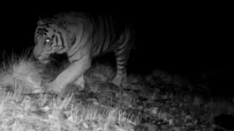 Camera trap footage revealed the tiger consuming approximately 40 kilograms of meat in one evening—a substantial amount compared to typical consumption patterns. While captive tigers typically receive 8 kilograms daily, wild tigers generally consume around 10 kilograms to survive. "When extremely hungry, a tiger can consume up to 50 kilograms of meat and then go without eating for six to seven days," noted Reddy, highlighting the animal's adaptive feeding behavior.