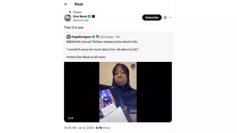 The video was shared by X user DogeDesigner, prompting a direct and stark response from the tech billionaire. Musk replied with a brief but loaded statement: "Then it is war." Significantly, Musk chose to pin this post to the top of his X profile, amplifying its reach. At the time of reporting, the pinned post had garnered more than 8 million views. In a separate, sarcastic comment on the same video, Musk added, "Wonderful people."